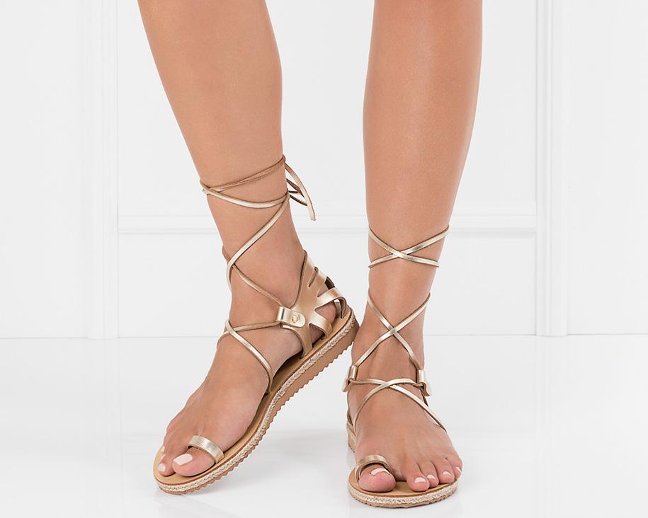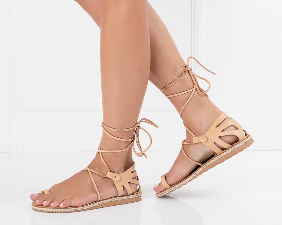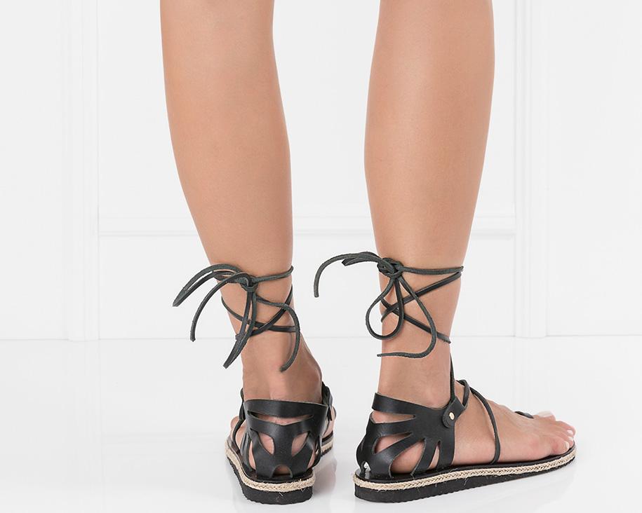 Crete is fully adjustable, slide your foot in and adjust the leather laces so that your foot is secure and comfortable, then tie the laces high or low around the ankles.