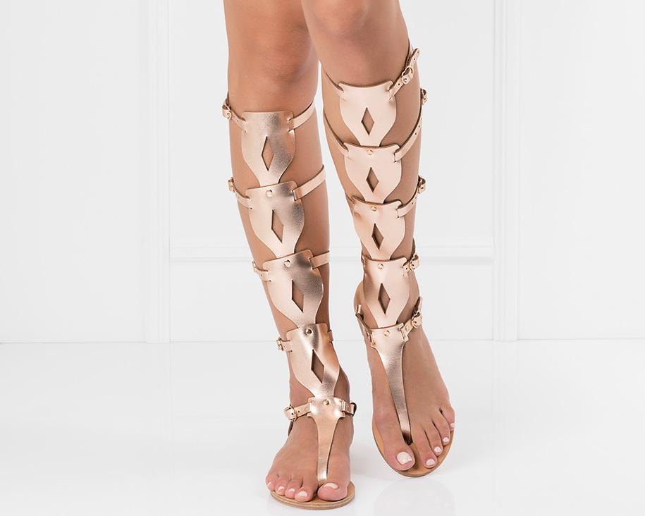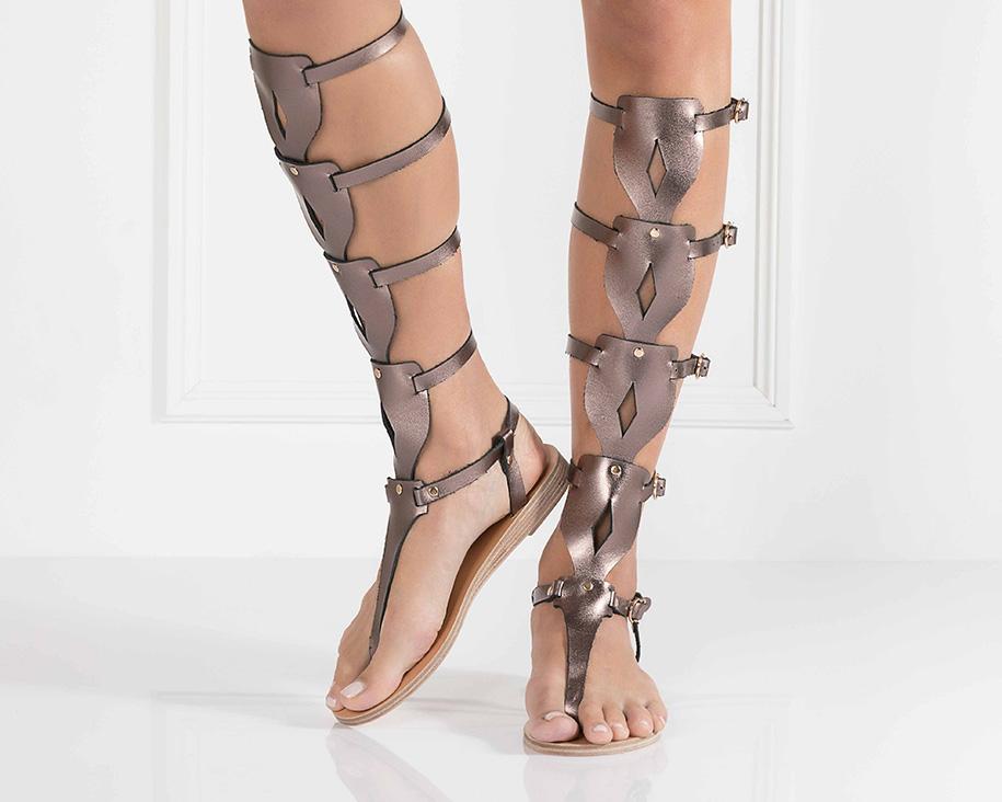 The Oplitis Knee High Gladiator sandal is the perfect answer to summer.  Our best-selling gladiator sandal, choose the color that best pairs with your style and add a bit of bohemian glamor to your wardrobe.