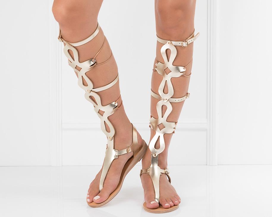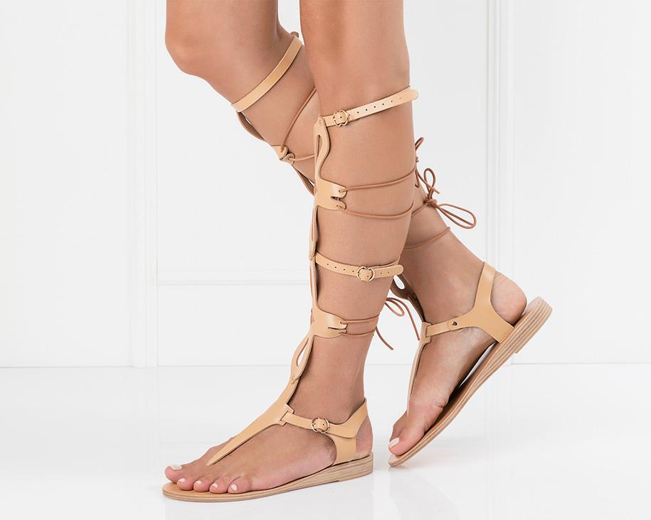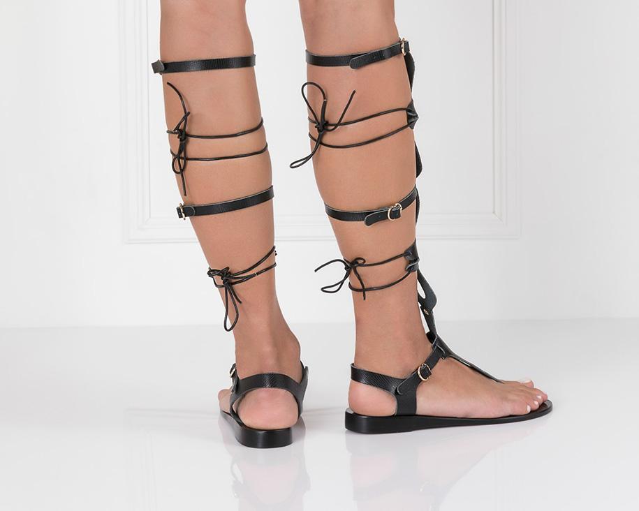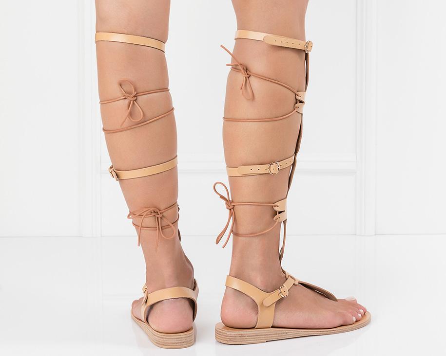 With straps and leather lacing, Sirena fastens up the back of the leg.  Our favorite feminine gladiator, Sirena is adjustable and comfortable enough to be worn day to night.
