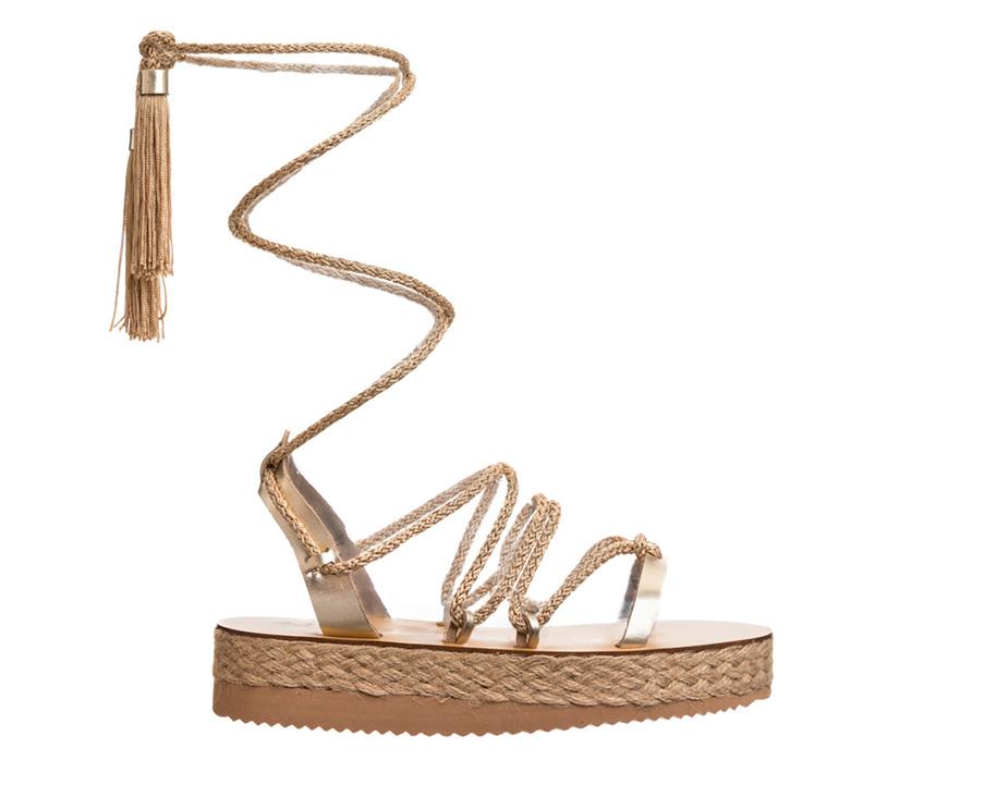 Rope sandals are all the rage this season. Thalia is our interpretation of the rope sandal and we upped the game by making them a platform and adding a gold tassel detail. Gold threaded rope and shimmery tassels make these the perfect platform for flowy white dresses and summer strolls.